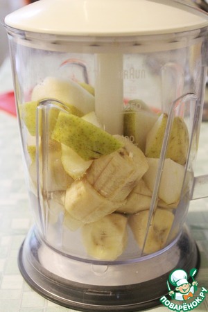Бананы очистить, грушу освободить от сердцевины, нарезать фрукты на кусочки и взбить до однородной массы блендером.