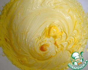 Отделить желтки от белков. В большую миску положить желтки и взбить с оставшимся маслом (70 г) и половиной сахара (50 г) до увеличения массы вдвое.