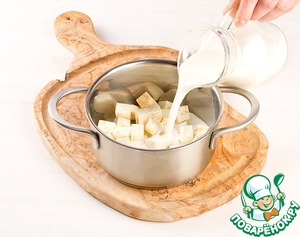 В подсоленном молоке сварить до готовности произвольно нарезанный корень сельдерея.