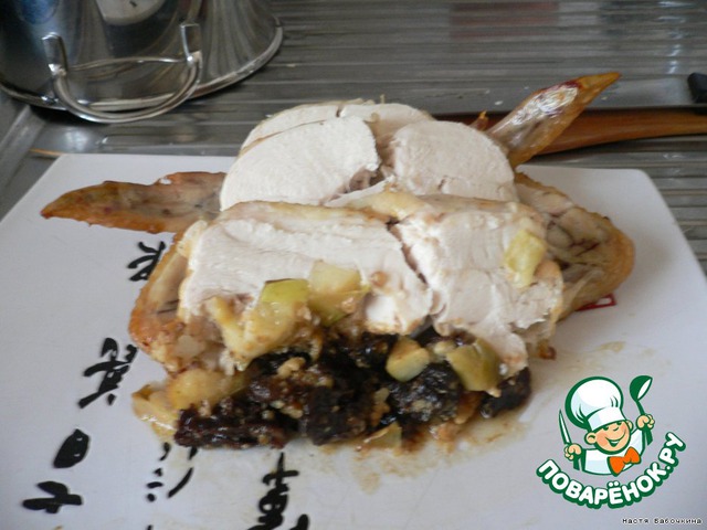 Рецепт «Курица, фаршированная яблоком и черносливом»: