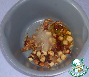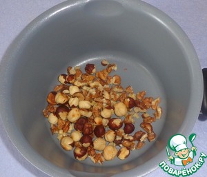 Смешиваем фундук и грецкие орехи.