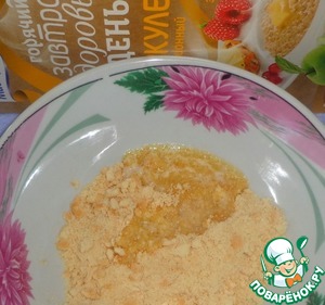Добавить к печенью растопленное сливочное масло и хорошо перемешать. Должна получится густая масса.