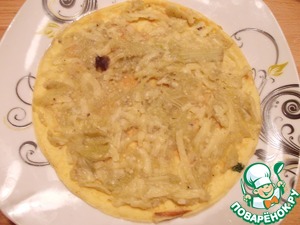 Из полученного теста сделать 3 блинчика-омлета, обжарив их на растительном масле с 2-х сторон.