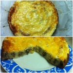 Приготовить заливку: молоко с яйцами взбить и добавить тёртый сыр. Залить этой смесью наш пирог.
