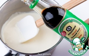 4. Растопить оставшиеся две ложки масла и обжарить в нем муку до золотистого цвета. Влить сливки или молоко, добавить ложку соевого соуса и варить на среднем огне до загустения. Но не нужно загущать слишком сильно, иначе паста получится сухой.