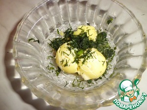 • Яичный желток растираем с укропом, при подаче посыпаем поверх салата.