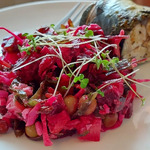 Вкусный салатик Готовила из половины достаточно крупной запеченной свеклы, одной крупной отварной картофелины,без лука. Остальные ингредиенты по рецепту (яйцо на терке и целиком без разделения на белки/желтки), масла 1 ст л. Показалось, что можно обойтись и без яйца. Украшала микрозеленью брюквы