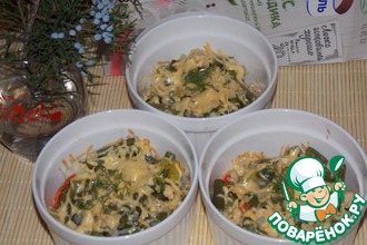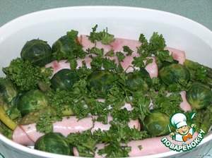 Уложить завернутую спаржу и капусту в форму на свой вкус.