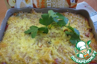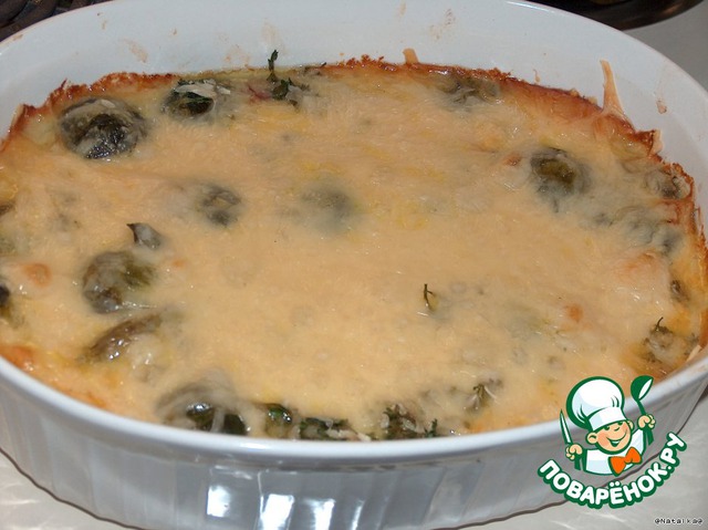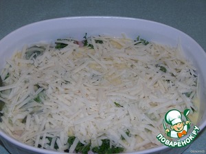 Посыпать тертым сыром и в духовку на 20 -30 мин. 180*