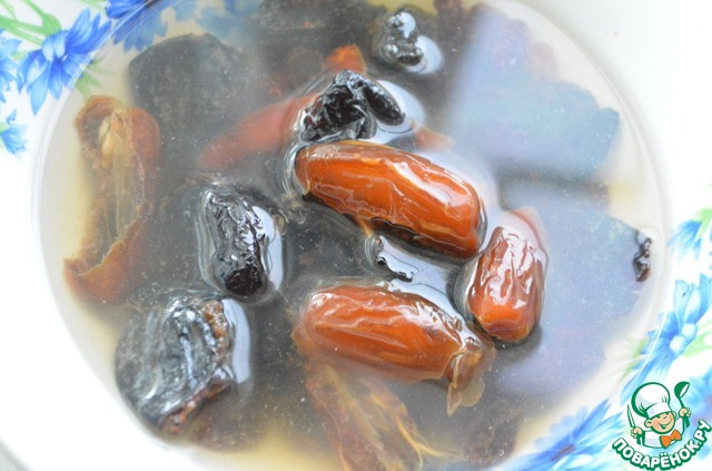 • Финики, изюм, чернослив, курагу вымочить в горячей воде 10-15 мин,