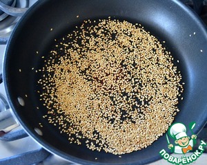 Кунжут поджарить на сухой сковороде до золотистого цвета буквально пару минут.