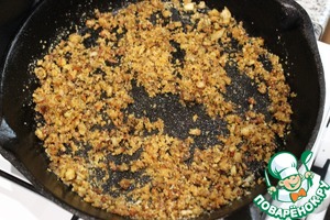 • Обжарить мясо до появления хрустящей корочки. Всыпать панировочные сухари, энергично мешать около 30 секунд. Отставить.