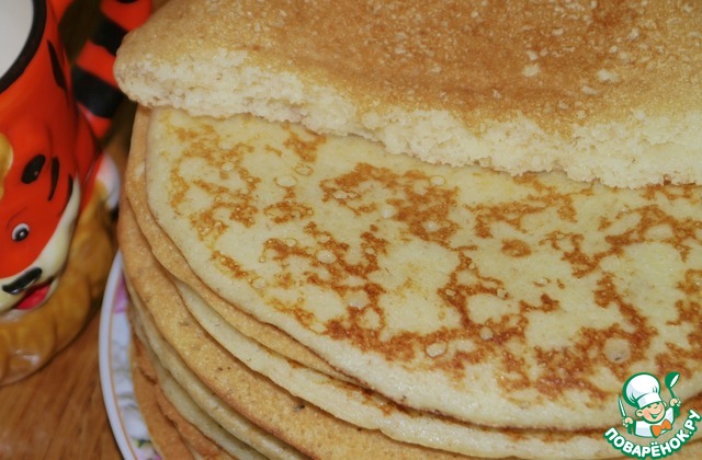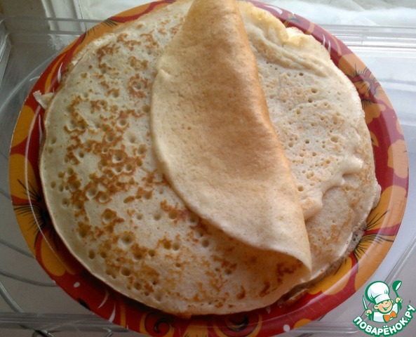 Блины получаются очень нежные, подаем горячими со сметаной, медом, сгущенным молоком, вареньем, кому как нравится