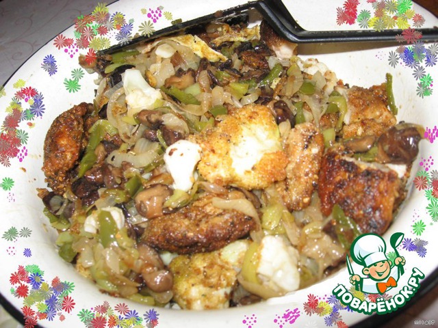 Основные компоненты эого блюда, это - курица и грибы, это блюдо очень сытное, что особенно оценят ваши мужчины. А волшебное сочетание вкусов никого не оставит равнодушным! А на гарнир к этому блюду я всегда подаю рис с кукурузой и перцем.