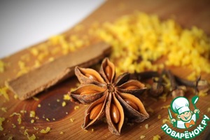 Приготовить специи : звёздочку кардамона, гвоздику, 0,3 части от палочки корицы. С лимона снять цедру мелкой тёркой.