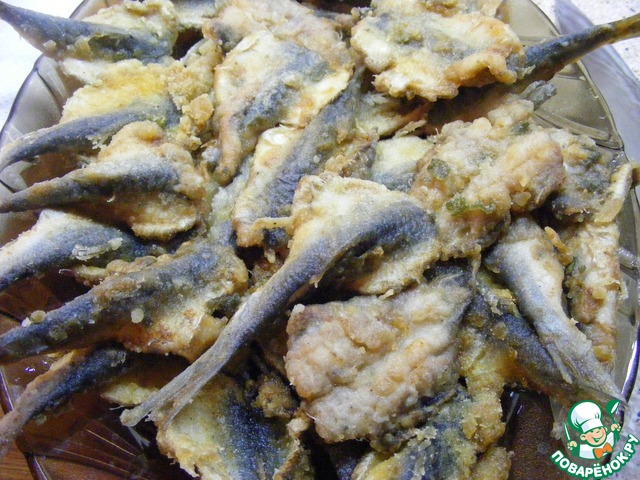 Boquerones en adobo - Золотистая, хрустящая, сочная, пикантная... Могу продолжать описывать эту рыбку до бесконечности... Это блюдо национальная особенность приморской Андалусии. В любом ресторане в огромном количестве, по цене, доступной для каждого кошелька, стоит во главе стола BOQUERON - это так испанцы кильку называют (бокерон). Приглашаю Вас к столу, отведать эту чудесную золотую рыбку.