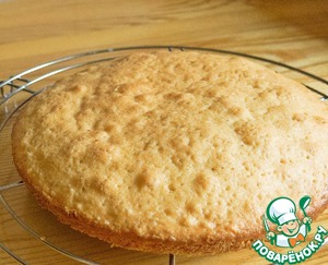 Достаем готовый корж из формы и даем остыть на решетке. У меня получился с небольшой горбинкой. Её нужно срезать ножом, чтобы выровнять поверхность, иначе мюсли будут рассыпаться.