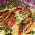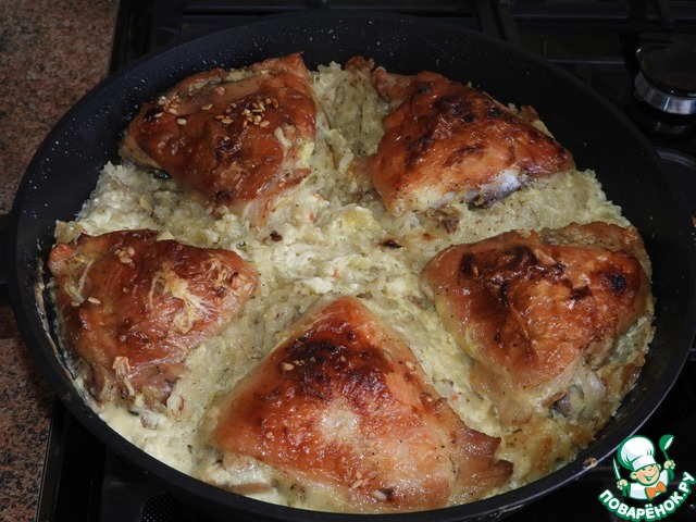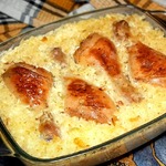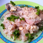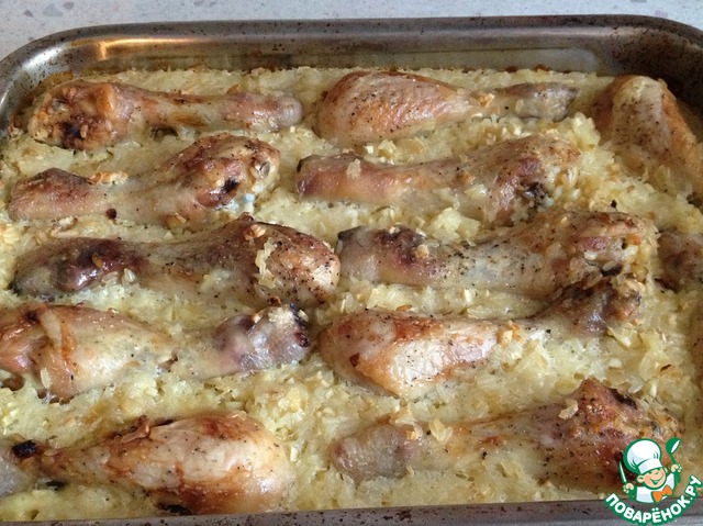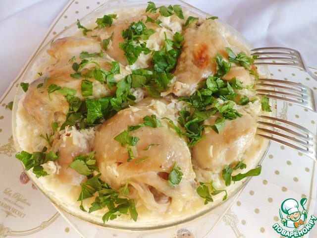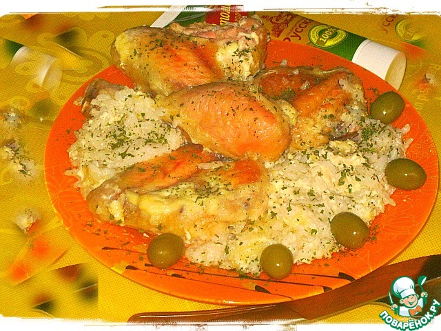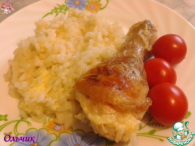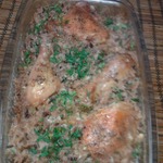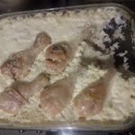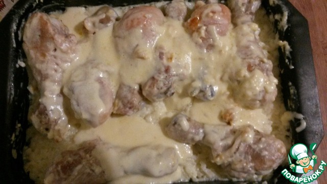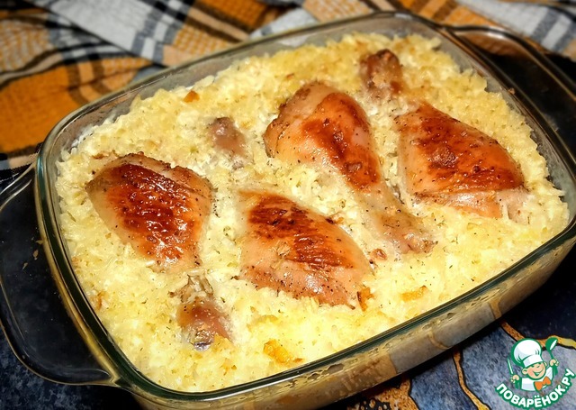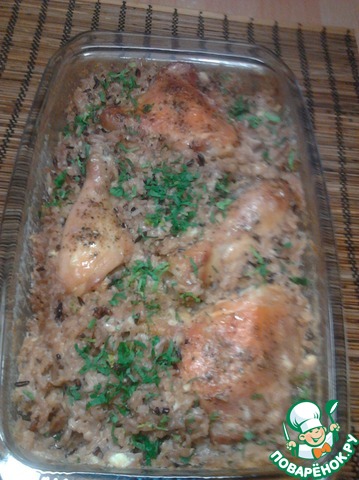соевом соусе и убрала в морозилку несколько пакетов прозапас).Вот эти куриные запчасти и разложила сверху.Рис смесь пропаренного, краснодарского и дикого. Не расползся. За 30 минут пропеклась курица хорошо на 200 градусах и рис не развалился. Заливала сливками с солью, головкой чеснока и карри. Довела соус чуть до закипания на 200 град за 5 мин. Выключила духовку, и оставила в горячей духовку на 15 мин. Очень вкусно! Детей не оторвать!