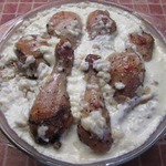 Здесь куриные бедрышки, разрезанные пополам. Вкусно! Безумно вкусно!