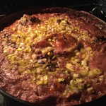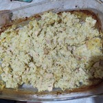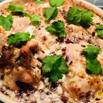 Итак, после того, как рис и курица готовы - достаем блюдо из духовки. Температуру духовки УВЕЛИЧИВАЕМ до 220 градусов. Заливаем блюдо соусом и снова отправляем в духовку.
