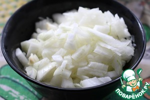 Пока грибы настаиваются, почистить и мелко нарезать лук.