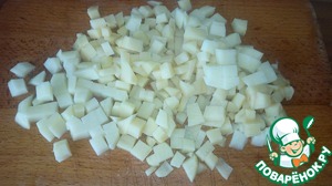 Картофель почистить и нарезать на мелкие кубики.