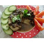 Подаем с обжаренной на раст. масле луковицей и сметаной.