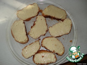 Намажьте ломтики хлеба с одной стороны маслом и горчицей (по желанию, я не использовала).