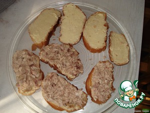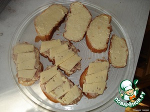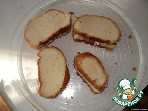 Накройте кусочками хлеба (намазанной стороной). Хорошо прижмите.