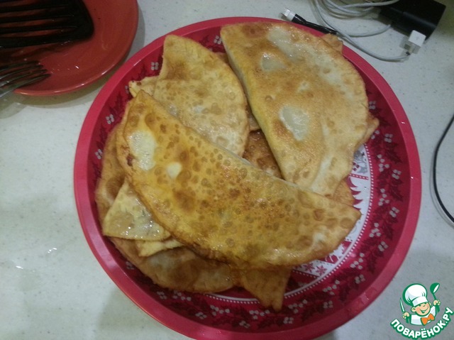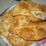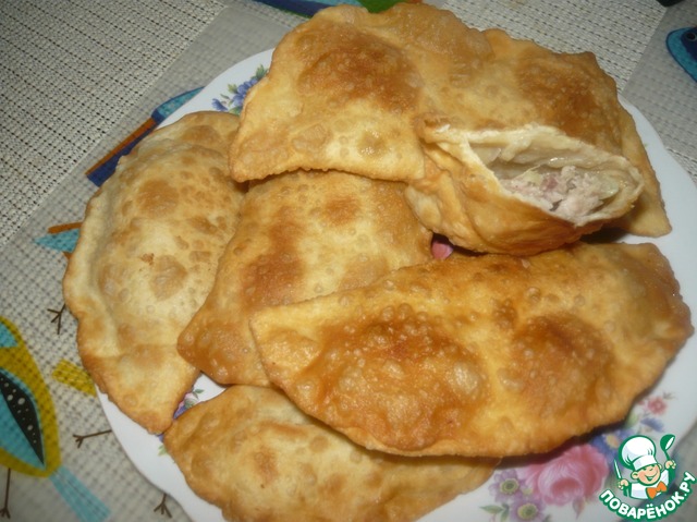 Вот такие у меня вышли чебуреки. Корочка хрустящая, а внутри мяско сочное.