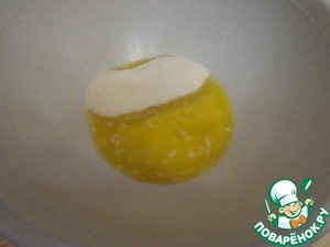Сливочное масло растопить на водяной бане. Добавить обычный и ванильный сахар.
