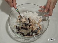 Добавьте яблоки к остальным ингредиентам. Заправьте соево-масляной смесью. Перемешайте с нарезанной петрушкой. По желанию, можно дополнительно поперчить.