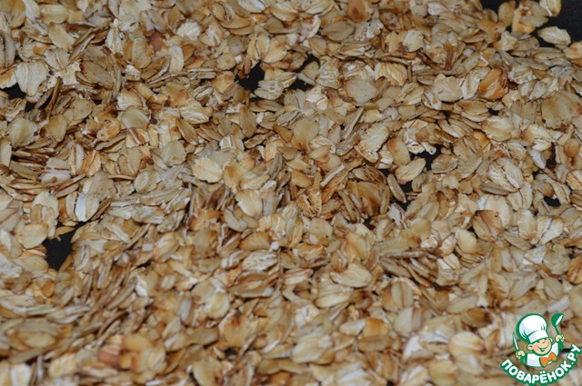 На сковороде распустить сливочное масло и обжарить на нем овсяные хлопья.