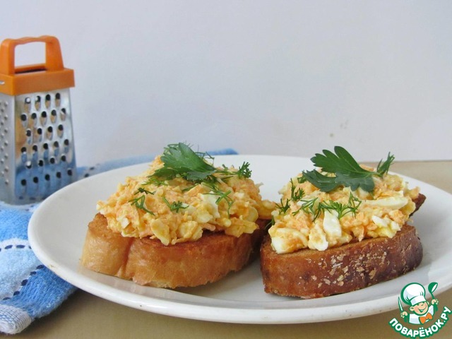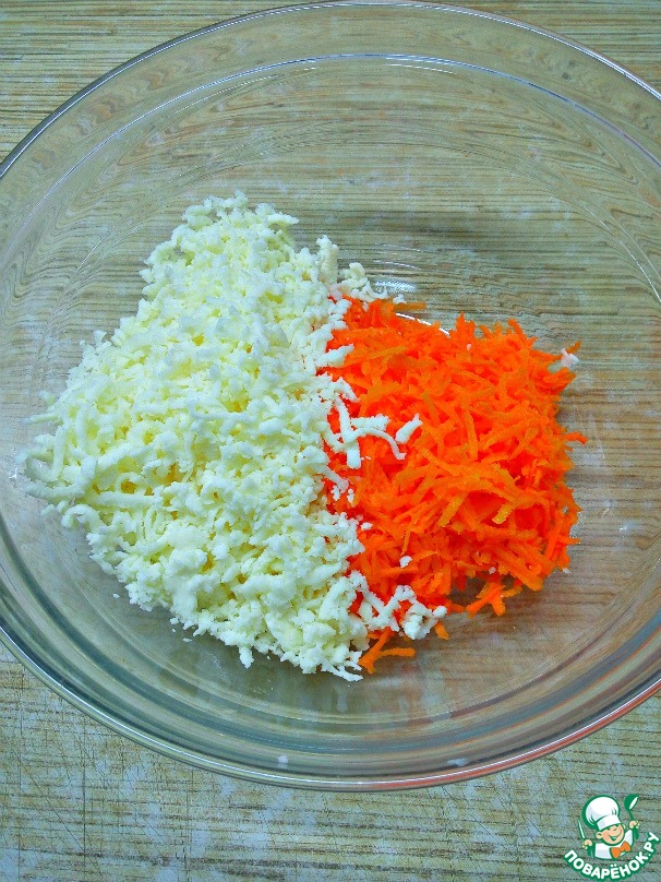 Яйцо отварить, очистить, натереть на терке и добавить к моркови.