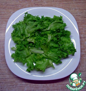 В салатник или на блюдо рвем листья салата, выкладываем половинки яиц, помидор и печень.