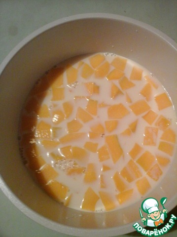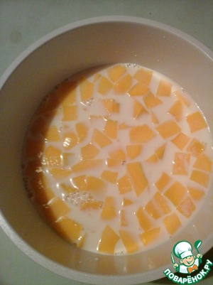 Залить тыкву молоком и довести до кипения ( на плите).