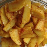 Посыпаем картофель свежемолотым порошком карри и сладкой паприкой.