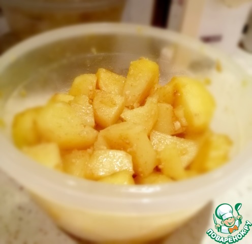 Всё тщательно перемешиваем, накрываем крышкой и ставим в микроволновую печь на полную мощность (у меня 800 Вт), на 8 минут.