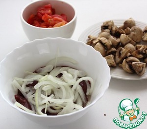 Ингредиенты для «Куриная печень с грибами в СВЧ»: