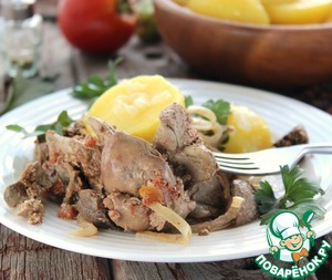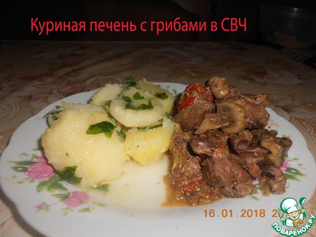 Рецепт «Куриная печень с грибами в СВЧ»: