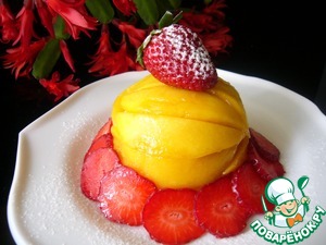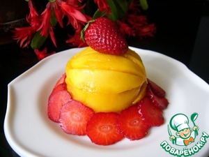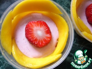 Оригинальный, вкусный десерт из мягкого творога с клубникой в дольках спелого сочного манго