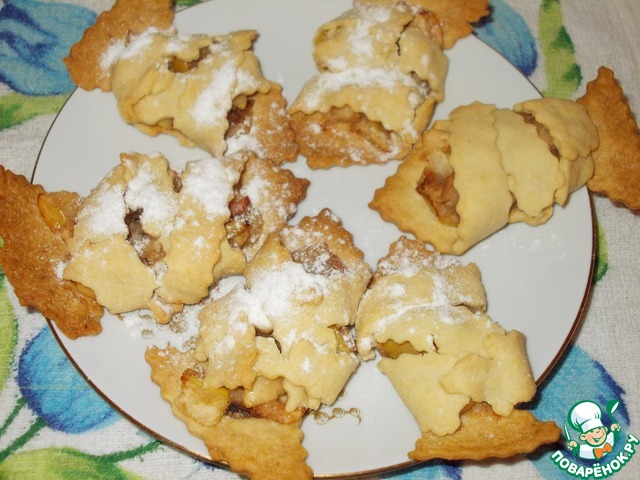 Только перед разделкой теста добавить к яблокам сухари панировочные, орехи, сахар, корицу. Делается это для того, чтобы начинка не потекла.