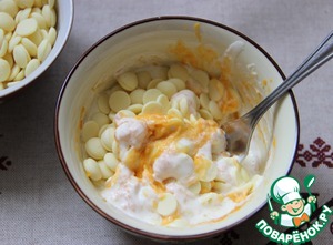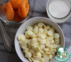Нагреть сливки и абрикосовое пюре, растопить в них шоколад, пробить массу погружным блендером.