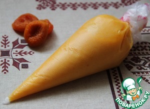 Первым делом надо приготовить ганаш, т. к. ему требуется время для стабилизации. Итак, абрикосовое пюре мы получим из лучшей кураги, залив ее кипятком до полного размягчения и пробив блендером.
