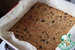 Полученную массу разделить на две части и испечь два коржа 24х24 см, или в один заход на большом противне. Массу утрамбовать, выпекать 35 -40 минут при 170 градусах.