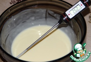 Для глазури растопить шоколад, добавить растительное масло без запаха. Остудить глазурь до 26 - 27 градусов.