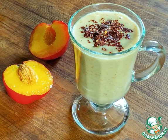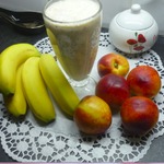 В чашу блендера (комбайна) сложить нектарин, банан, добавить кашу. |