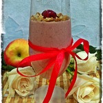 Я использовала яблоко, замороженные крыжовник, черную смородину, малину. Украшала теми же ягодками. Мед и сахар не добавляла.
