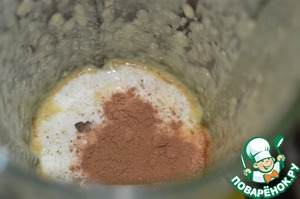 • 3. Затем добавить какао, корицу, йогурт, взбивать вливая холодный кофе.