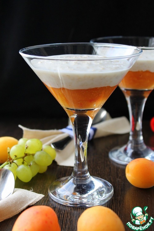 На дно бокала кладем абрикосовое пюре, сверху кефир с хлопьями. Перед подачей можно немного охладить. Приятного аппетита!